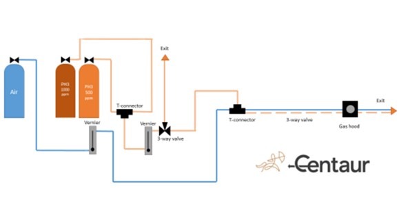 4. Open the phosphine gas valve, directing phosphine flow away from the sensors and towards the exhaust.