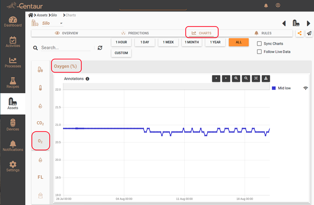 6. Expose the sensor(s) to the gas for a minimum of 5 minutes, while monitoring the graphs on the Centaur platform.