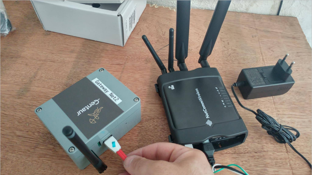 Netcomm M2M Router is the device which undertakes the communication of the local wireless sensor network data to the Centaur Cloud Platform. It is an industrial embedded computer equipped with a serial port, GPS, and, 4G/GSM and WiFi networking interfaces. The device receives the data collected generated by the Xbee wireless network and collected by the Xbee gateway through a USB port, stores the data locally, and, forwards the data to the cloud safely when it finds a stable internet connection.
