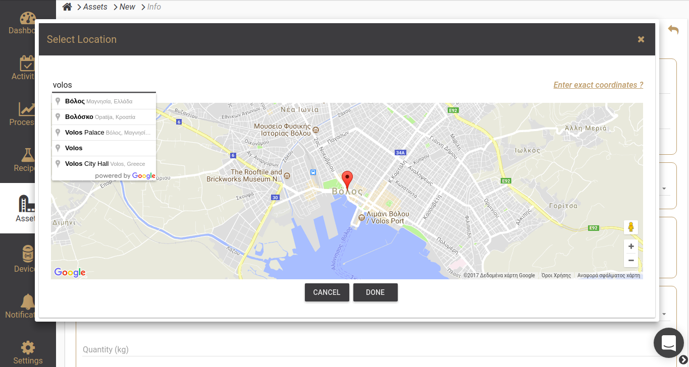 Set Asset Location: After entering the name (and an optional description), click on the “Set Now” link to open a pop-up window with a world map. Type your area in the search bar to find your location quickly. For greater accuracy, switch to satellite view and drag the pin to the exact position of your asset. Click “DONE” to confirm the location.