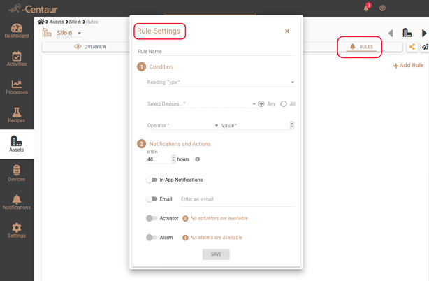 Figure 2. Setting rules and thresholds on each silo to receive customized alerts based on grain conditions.