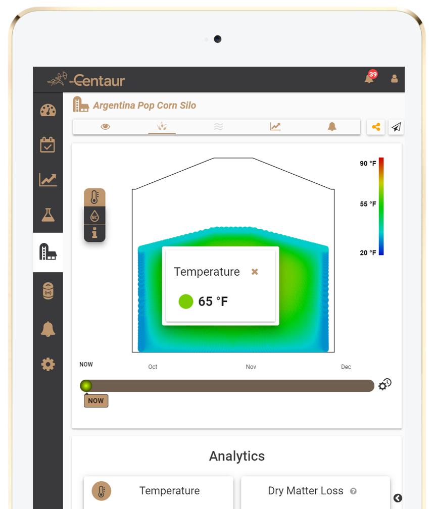 Centaur’s data analytics software complements physical sensor measurements to provide accurate estimates across the entire storage volume, even beyond direct sensor coverage
