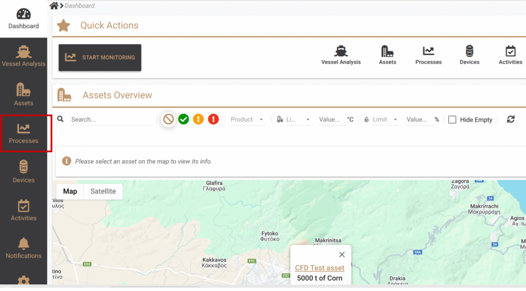 2. Select the Process Type. Please note that Heat and Phosphine Treatment processes also let you choose a template treatment plan, combining sensor readings with pest treatment analytics.