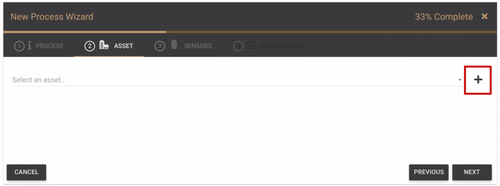 3. Press “Next” button to select an asset: If your asset is not created yet, you can quickly create an asset name by clicking on “+” sign: