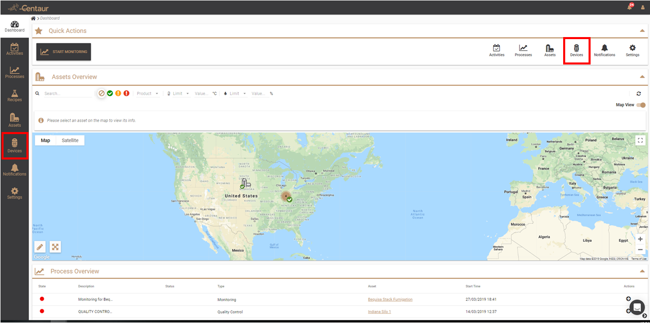 If your Centaur All-in-One Gateway is properly configured, it will appear in the Devices tab.
