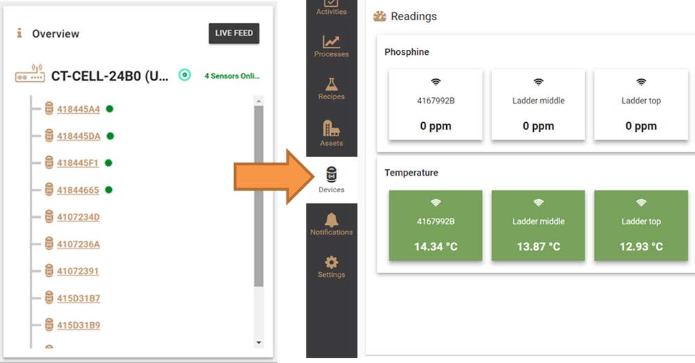 Displays all gateways linked to your account. Selecting a gateway loads its associated sensors.